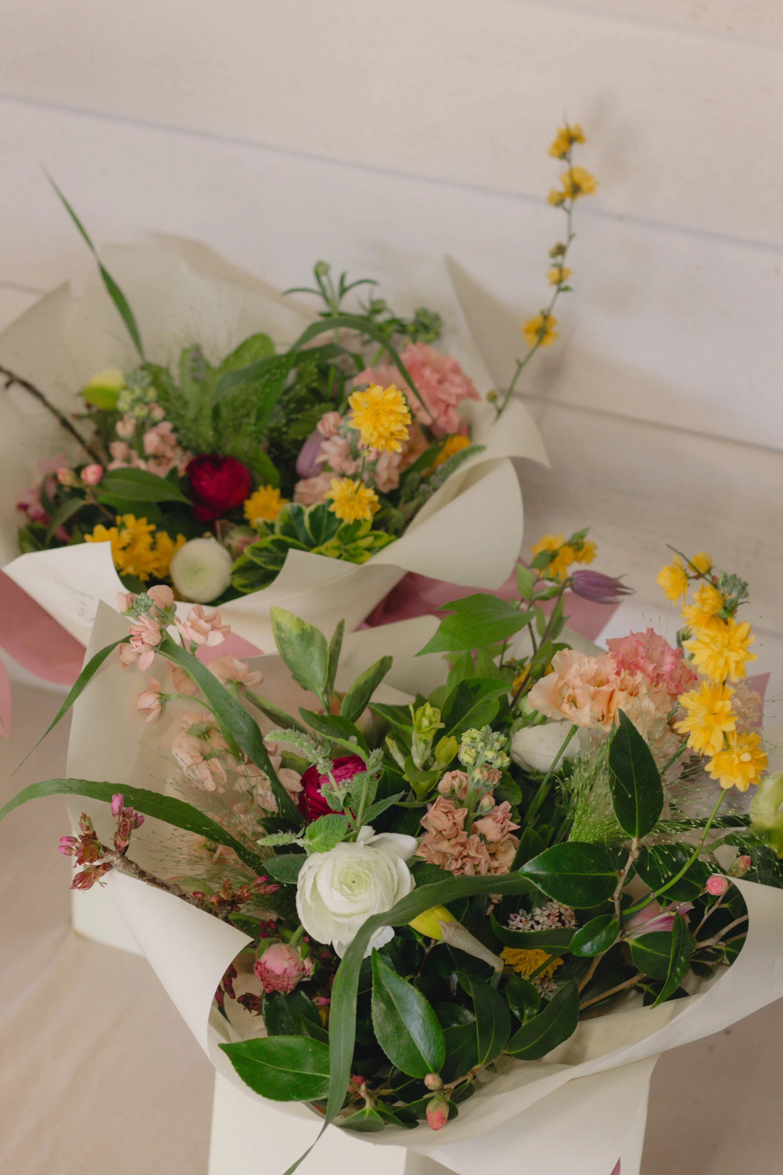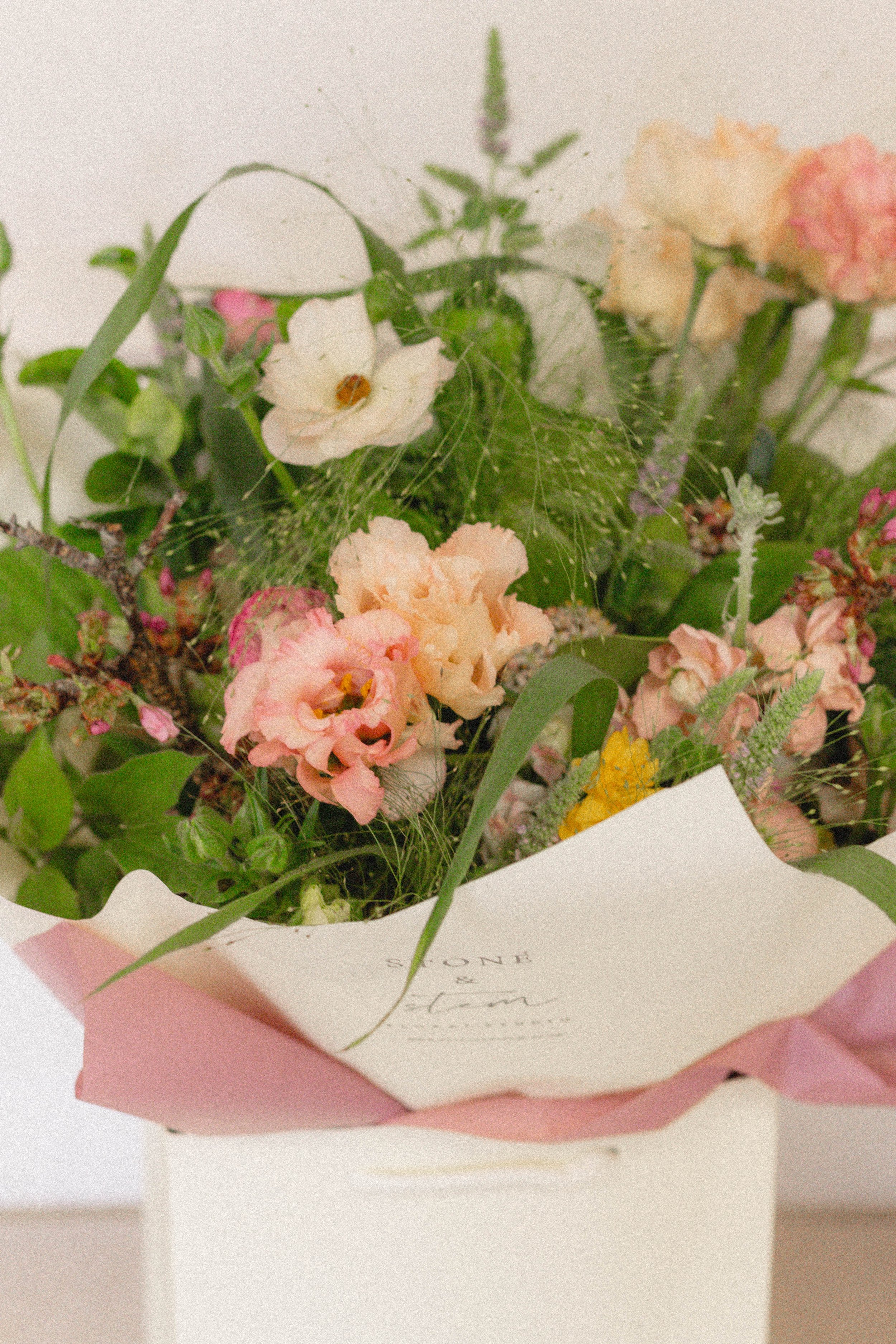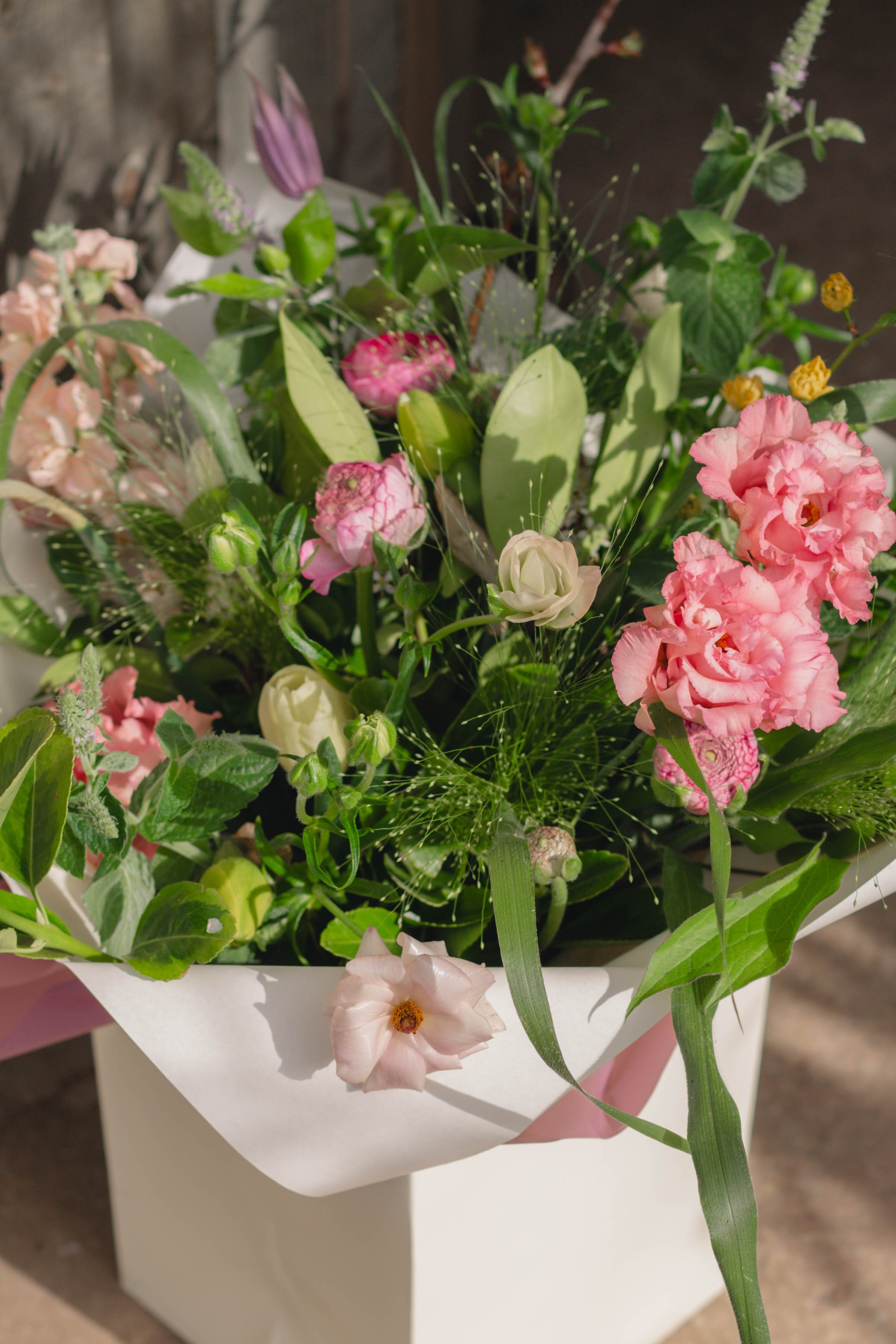 Each bouquet is created in a classic medium size, featuring pastel Spring inspired colours, with stunning seasonal flowers alongside textural foliage. Each bouquet is beautifully wrapped with a water source within a luxury gift bag, perfectly finishing the bouquet.